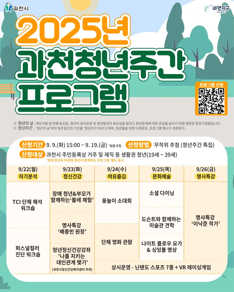 ⭐2025 과천청년주간 프로그램⭐ 참여자 모집(~ 9/19(금)까지)