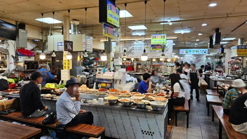 다양한 음식이 준비되어 있는 성동시장입니다.