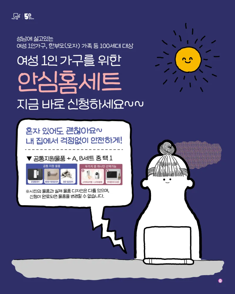 성남시 여성 1인 가구를 위한 '안심홈세트' 신청하세요!