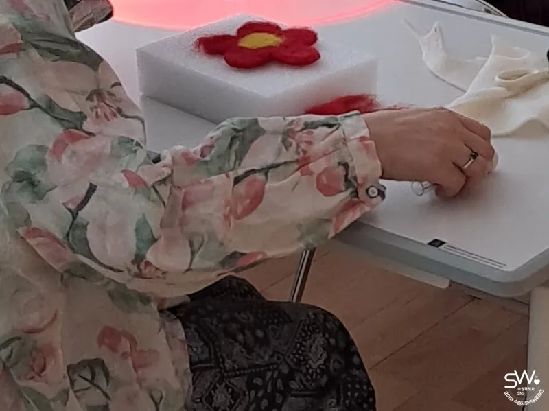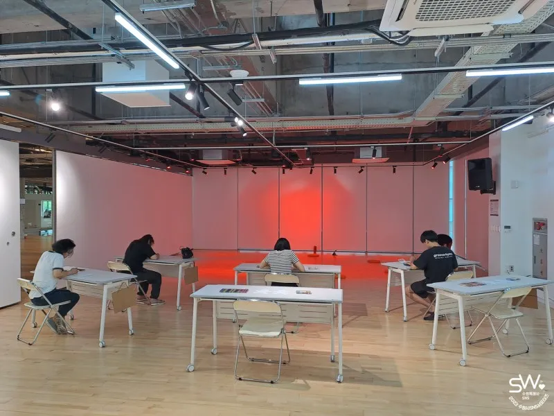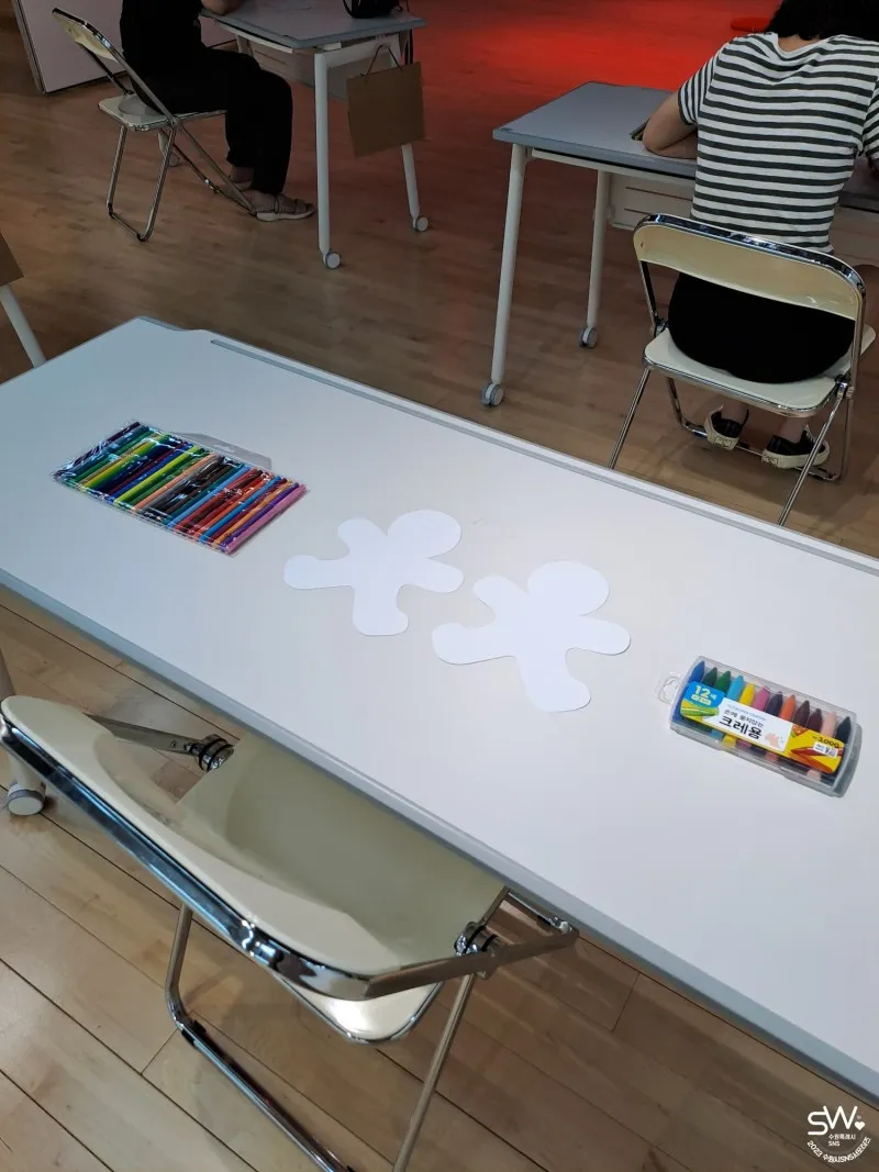 이 외에도 빨간색을 무용, 공예, 연극으로 표현하는 수업도 둘러보았는데요. 화이트보드와 종이 놓여 있는 책상에서 글쓰기 수업을 하던 연극 수업이 독특해 보였고, 참여자 모두가 진심으로 예술 활동을 즐기고 있음이 느껴져 인상 깊었습니다.