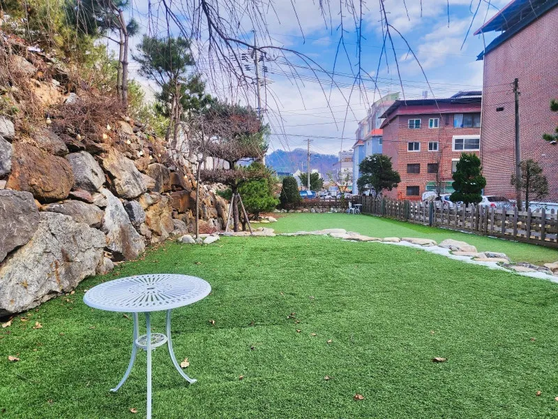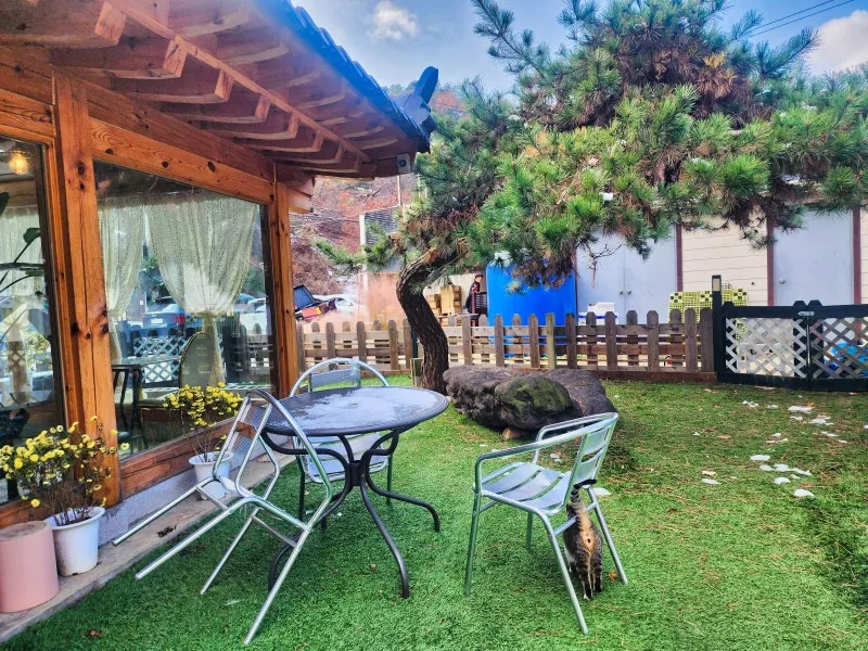 외관과 야외 테라스 정원 그리고 고양이 분양(고양이는 야외 정원만 이용가능)