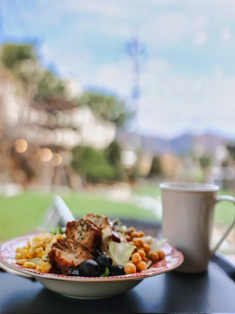 브런치세트 13,000원 + 닭가슴살 샐러드 세트 11,000원 커피는 연하게 디카페인 등 추가 금액없이 선택 가능