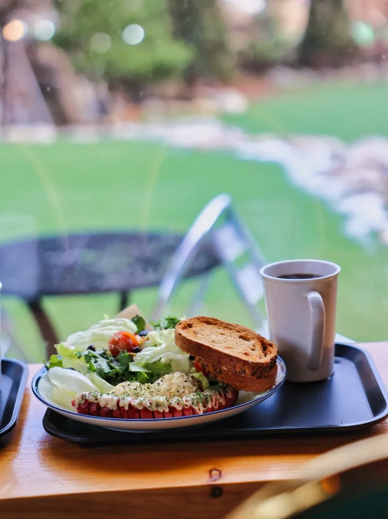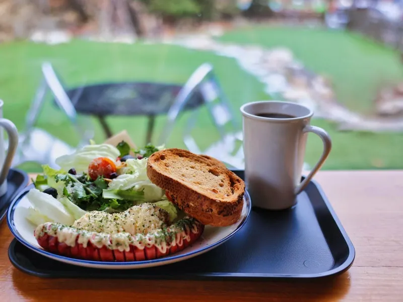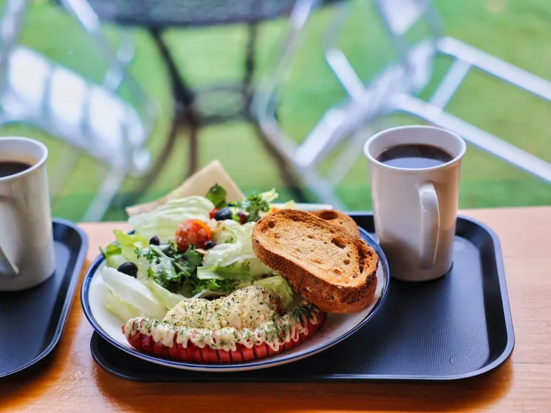 브런치 세트와 닭가슴살 샐러드는 사진에서 볼 수 있듯이 무척이나 푸짐하게 담겨있었습니다. 메뉴 속에 들어가는 음식 대부분 웰빙 식품으로 유명한 것들이라 다이어트 중이신 분들도 죄책감 없이 즐겁게 먹을 수 있는 구성이었습니다. 함께 나온 커피도 무척이나 맛있었는데, 연하게나 디카페인 등의 옵션을 추가로 선택할 수 있습니다. 저 같은 경우는 커피를 마시면 잠을 잘 자지 못해서 디카페인을 주문했는데, 무척이나 만족스러웠습니다. 함께 방문한 제 아들 같은 경우는 브런치 세트에 포함되어 있는 소세지를 정말 맛있게 먹었습니다. 지금까지 가평을 방문하신 관광객분들을 위해 브런치 메뉴가 제공되는 한옥카페를 소개해 드렸습니다. 아름다운 가평의 자연을 구경하면서 즐겁고 분위기 있는 시간을 보내고 싶으신 분들에게 추천드립니다.