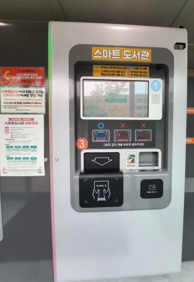 스마트도서관과 도서반납기가 함께 비치되어 있는 부스에 자리하고 있습니다.