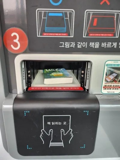 그러면 책에 부착된 RFID칩을 센서가 읽고 투입구가 열리게 되는데 이곳에 반납할 책을 넣어주면 모든 순서가 끝납니다.