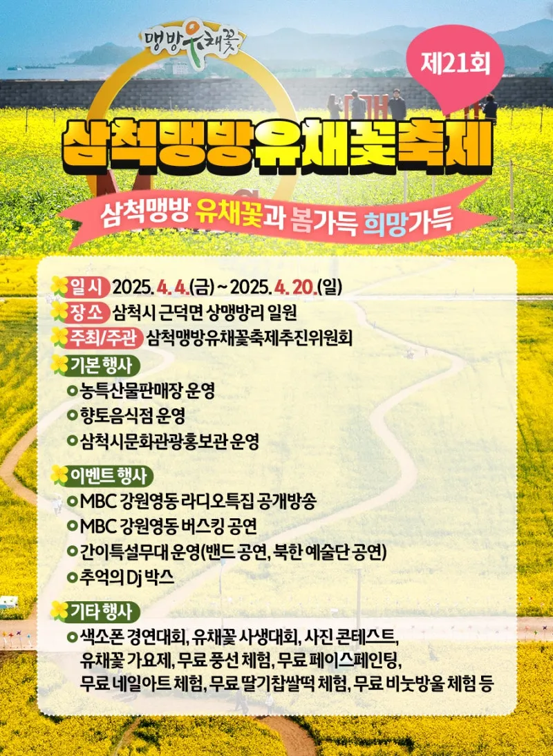 제21회 삼척맹방유채꽃축제 2025.4.4.-4.20. 개최!