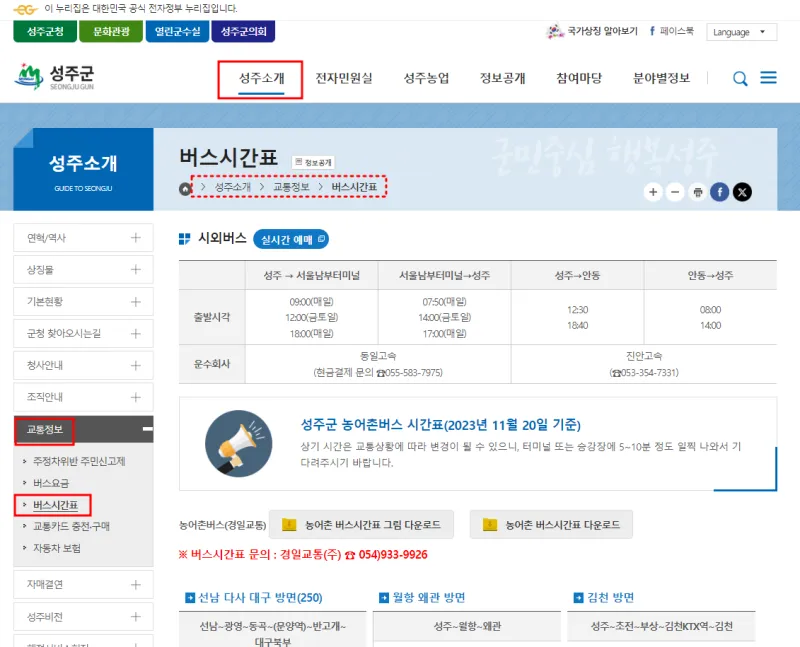 - #성주군버스시간표