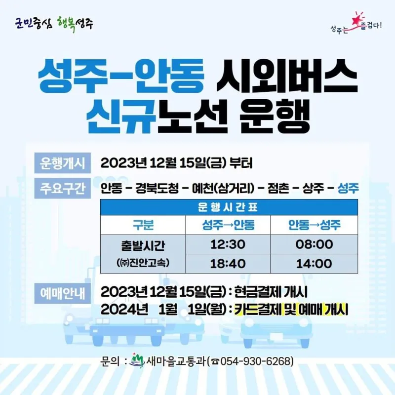 [소식] <성주-안동> 시외버스 신규노선 운행 안내