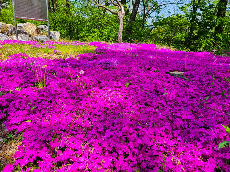 꽃밭이 조성되어있고 체력을 기를 수 있는 운동기구가 준비되어있습니다.