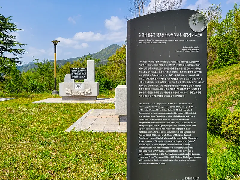 전승비 아래로 내려오면 권규섭, 김수곡, 김준운, 한상택, 권태용 애국지사 추모비가 있습니다.