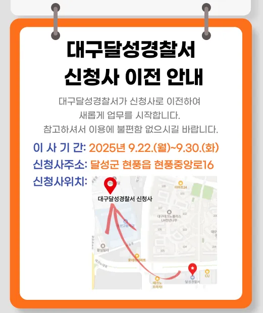 달성경찰서 청사 이전 :: 9월 22일~30일