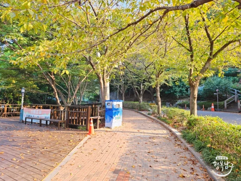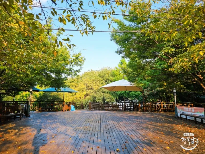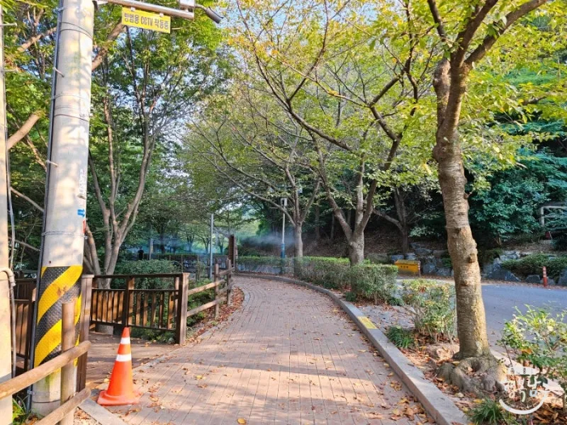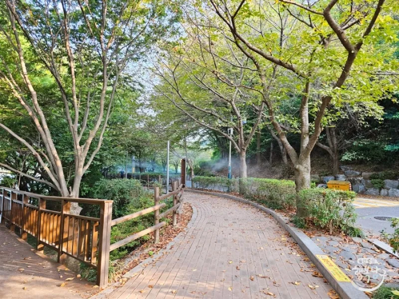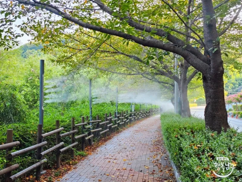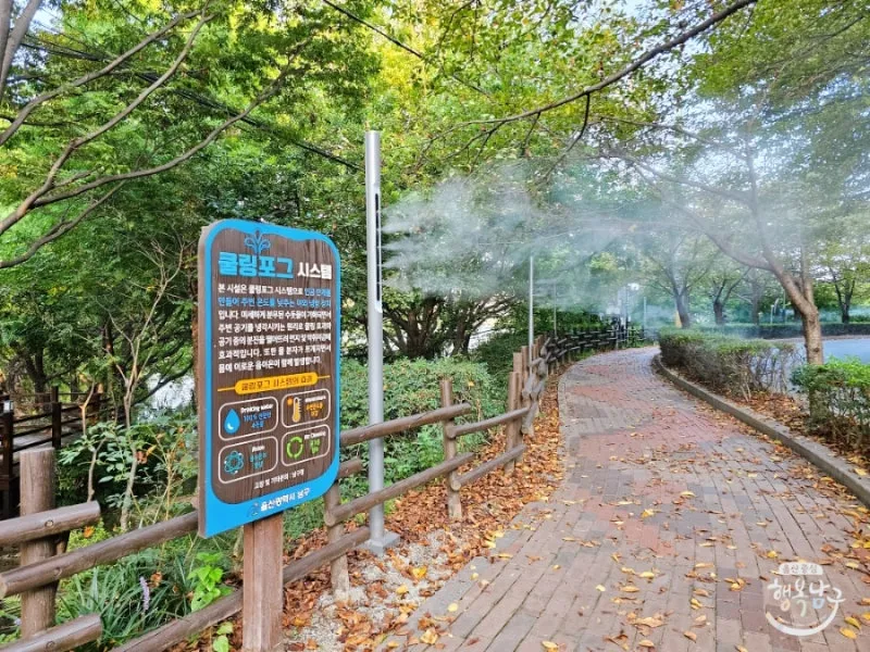 선암호수공원에서 쿨링 포그가 설치된 위치는 1주차장 옆에 있는 데크부터 해월당 앞 산책로까지예요.