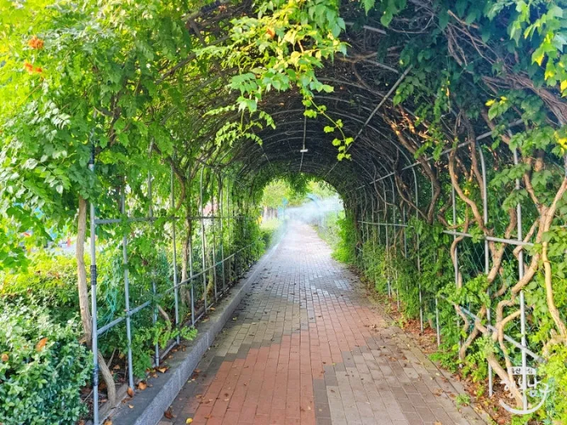 그늘이 있는 터널 안으로 들어가면 더 시원해져서 천천히 산책을 즐길 수 있었습니다.