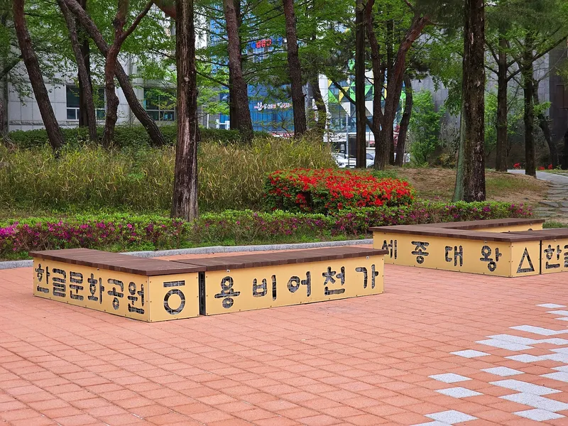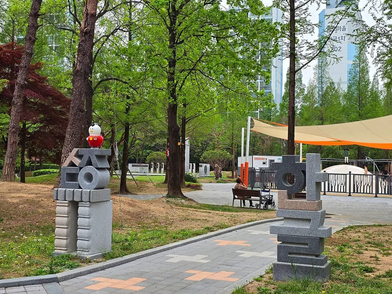 공원은 한글을 활용한 벤치 등 한글을 활용한 시설과 국가보훈부 지정 현충시설 환뫼 이윤재 선생 기념 조형물등도 세워져 있어서 한글의 아름다움과 역사적 의미를 동시에 느낄 수 있는 공간이기도 합니다.