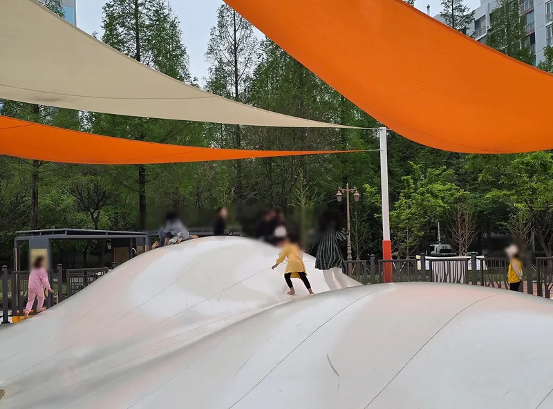 어린이뜀동산은 키 90~14센티미터어린이가 회당 최대 20명까지 이용할 수 있어요. 오전 10시 20분부터 오후 5시까지 운영됩니다. 아이들이 마음껏뛰며 놀 수 있는 뜀동산이 있어 아이랑 함께 공원을 찾는 분들도 많았어요.