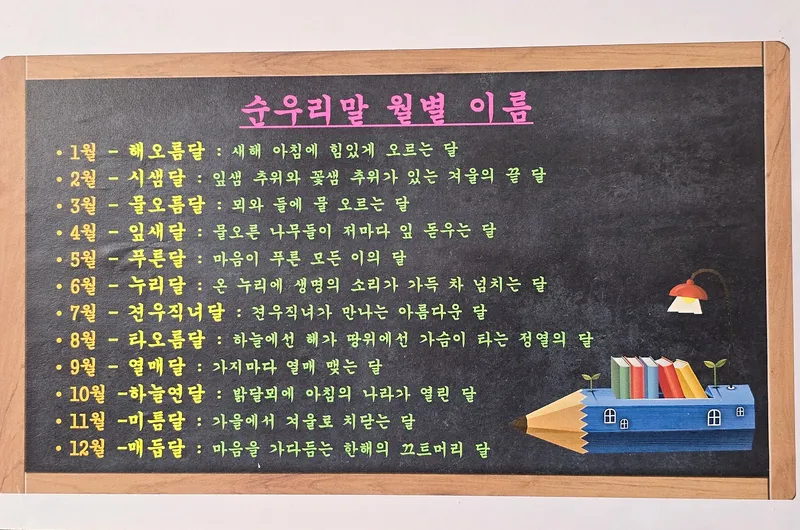 최근 어휘력 문해력에 관한 걱정도 많아서 어릴 때부터 한글을 제대로 알고 숙지하는 것이 중요한데요. 김해한글박물관내에는 우리말 날짜, 순우리말 월별 이름 등 알아두면 좋을 단어도 전시되어 있어요,