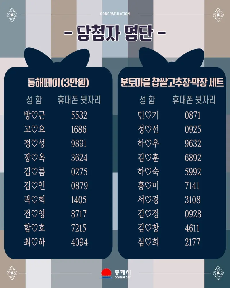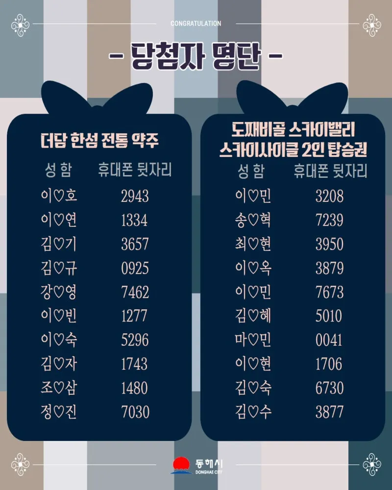 ♣동해시 고향사랑기부제 설맞이 감사 이벤트 당첨자 발표♣