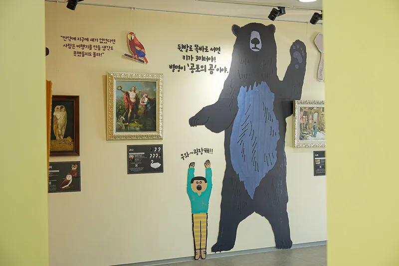 벽면 가득 동서양 명화 속 동식물 이야기와 그림 속 숨은 이야기들을