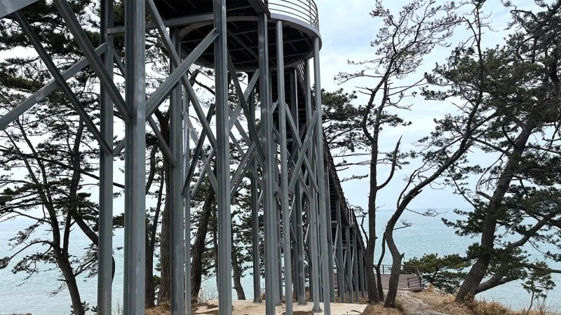 저 꼭대기에 전망대가 있는데 아직 완공 전이라 뒤쪽으로는 데크가 연결되어 있지 않았습니다.