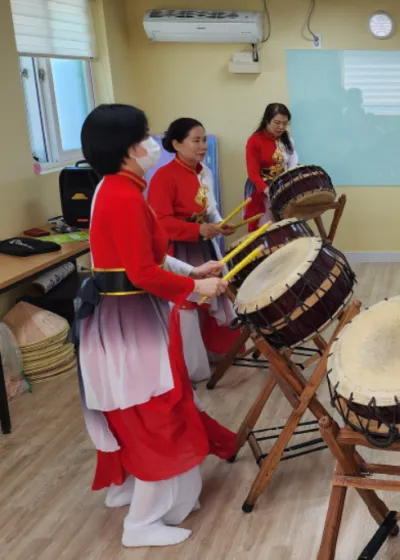 중국, 태국, 일본, 베트남 등 다양한 곳에서 모인 분들이셨는데요. 우리나라에서 20여 년 살아오면서 힘든 시기에 서로 의지하고 고민을 털어놓으며 위로하는 등 온갖 시름을 다 잊고 즐겁게 생활하는 매우 유익한 공간으로 활용되고 있었습니다. 신나는 음악에 맞춰 즐기며 연습한 다음 노인정 위문 공연, 각종 행사 공연 활동에 참여한다며 대단한 자부심을 느끼고 있더군요.