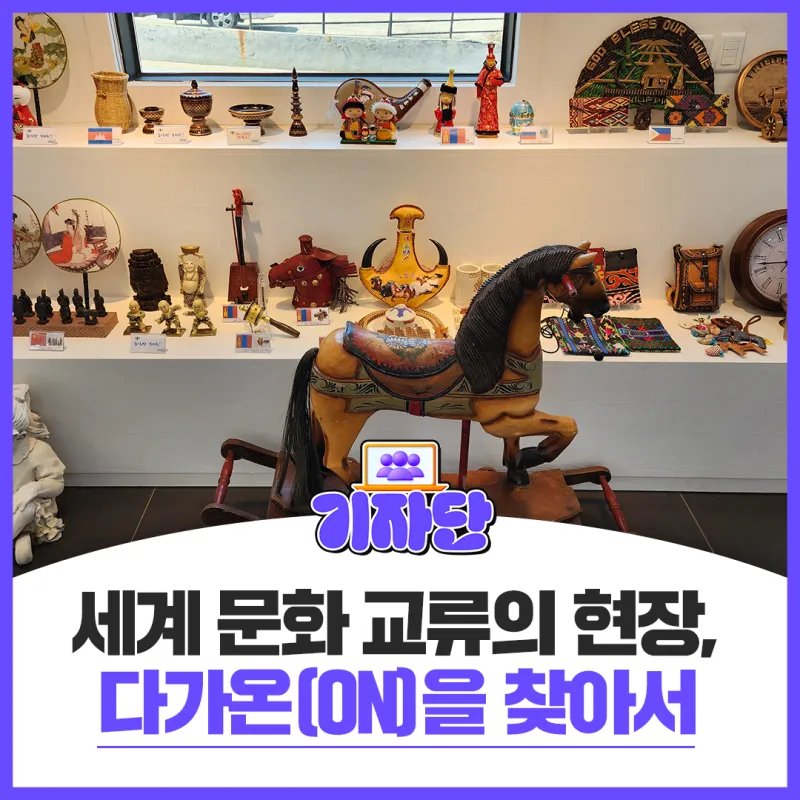 ‘다가온(ON)’은 함께 살아가는 공동체를 구현하기 위해 다문화 가족과 지역 사회 간 실질적인 융합을 도모하여 지역 사회와 소통을 이루고자 조성된 열린 공간인데요. 세계 여러 나라의 놀이・의상・음식 등 전시물을 관람하고 직접 체험도 해볼 수 있으며 시민 누구나 자유롭게 이용할 수 있습니다.