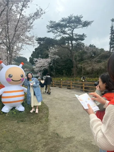 마스코트와 사진을 찍고