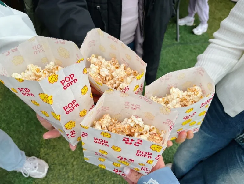 갓튀긴 팝콘을 맛볼 수 있었어요.