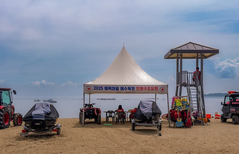 무엇보다 안심하고 물놀이를 즐길 수 있는 환경이 조성된 것이 큰 장점입니다. 해수욕장 개장 기간 동안에는 인명구조요원이 상시 배치되어 수시로 해상 상황을 모니터링하고 있습니다.