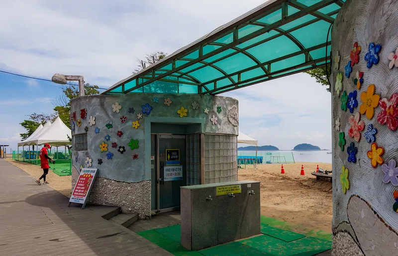 샤워실과 세족장은 냄새나 오염 없이 꾸준히 관리되고 있으며, 해수욕 후 바닷물과 모래를 깨끗이 씻어내고 귀가할 수 있도록 잘 정비되어 있습니다. 발 씻는 공간도 넉넉하게 마련되어 있어 줄을 길게 서야 하는 번거로움이 적고, 특히 어린 자녀를 동반한 가족들에게 유용합니다.