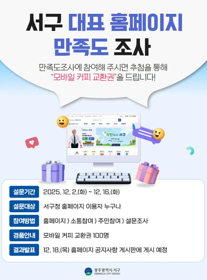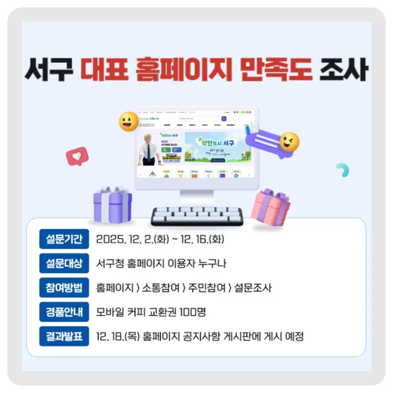 서구 대표홈페이지 만족도조사&커피쿠폰 이벤트!