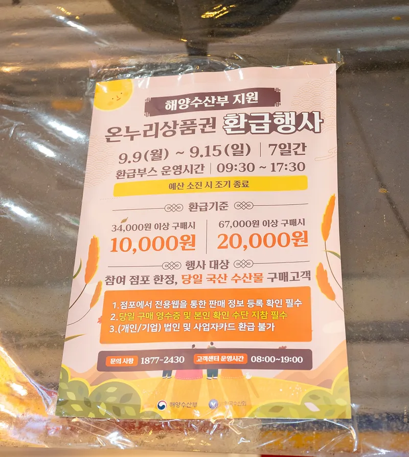 - 환급기준: 농축수산물 34000원 이상 구매 시 만원, 67000원 이상 구매 시 2만원
