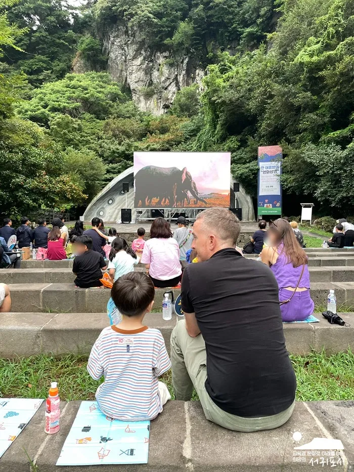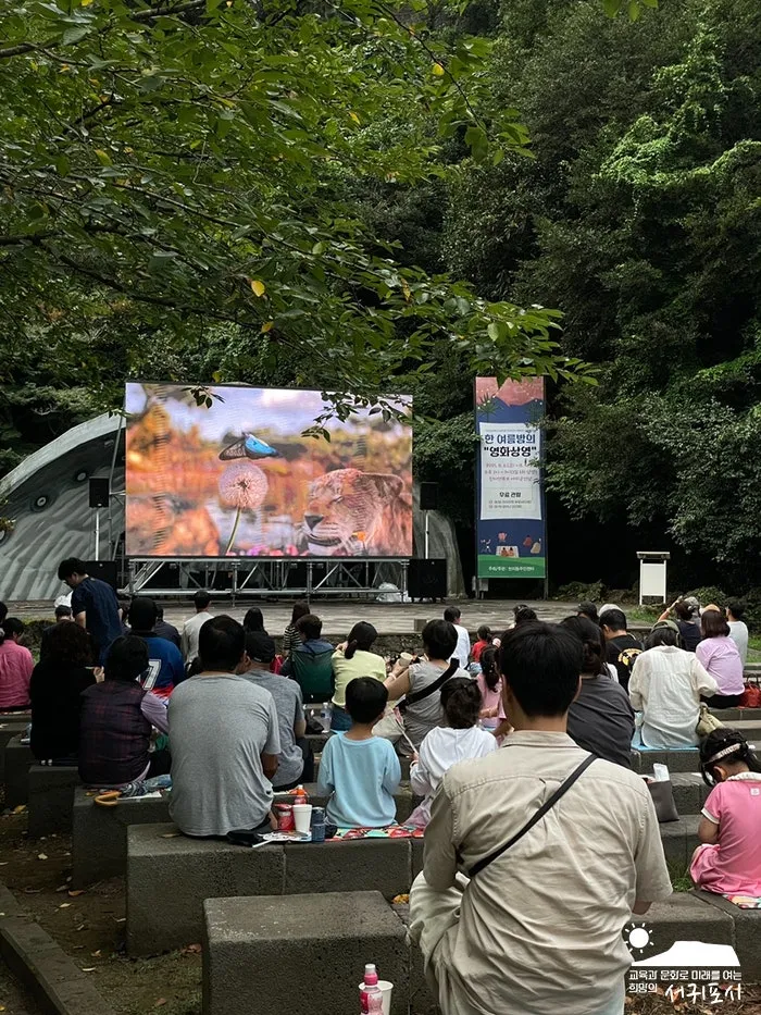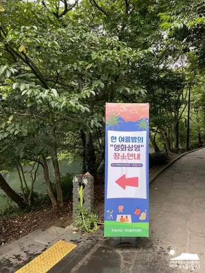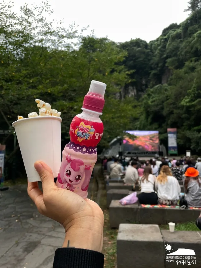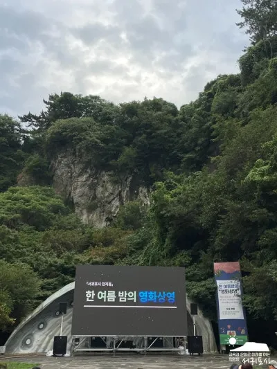 천지연 폭포의 야외 영화 상영 행사에 다녀왔어요