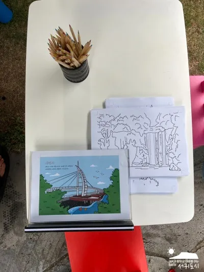 또 다른 코너에서는 색칠놀이가 준비되어 있었어요