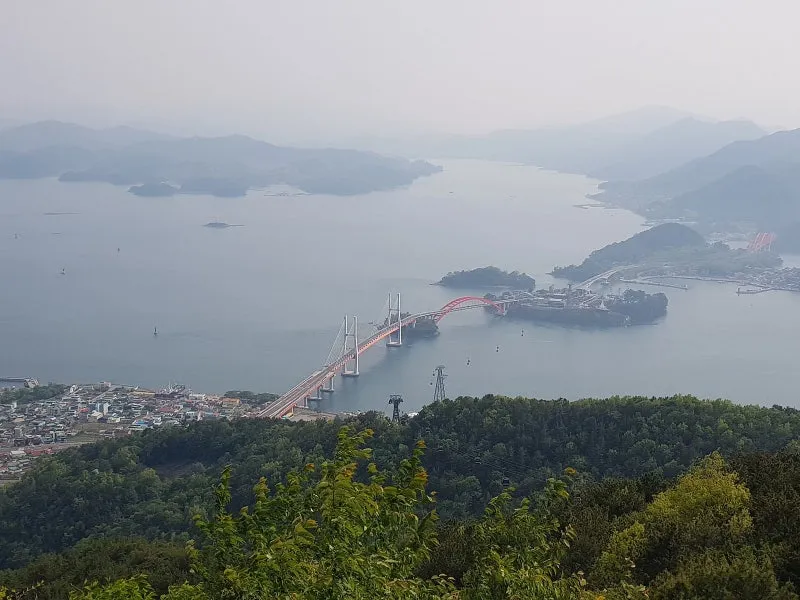 케이블카를 타고 오르는 동안 삼천포대교와 사천만의 풍경이 한눈에 펼쳐지며,