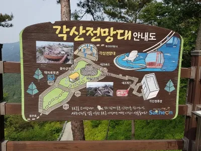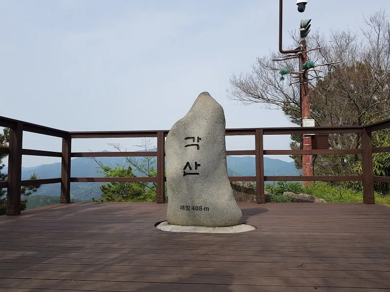 계단을 따라 올라가면 각산 전망대와 정상부에 도착합니다.