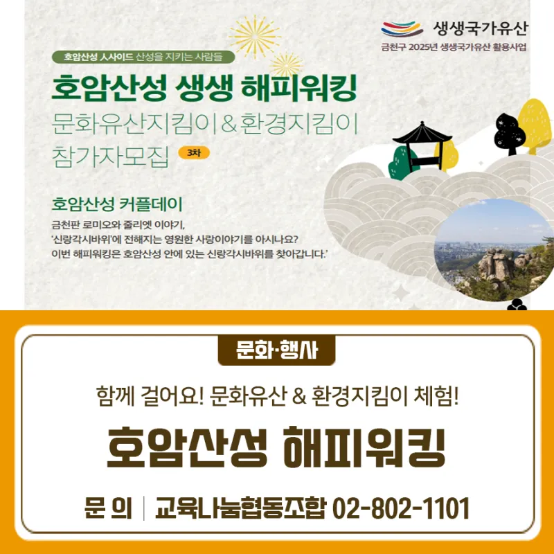 호암산성 해피워킹 – 문화유산지킴이&환경지킴이 참가자 모집