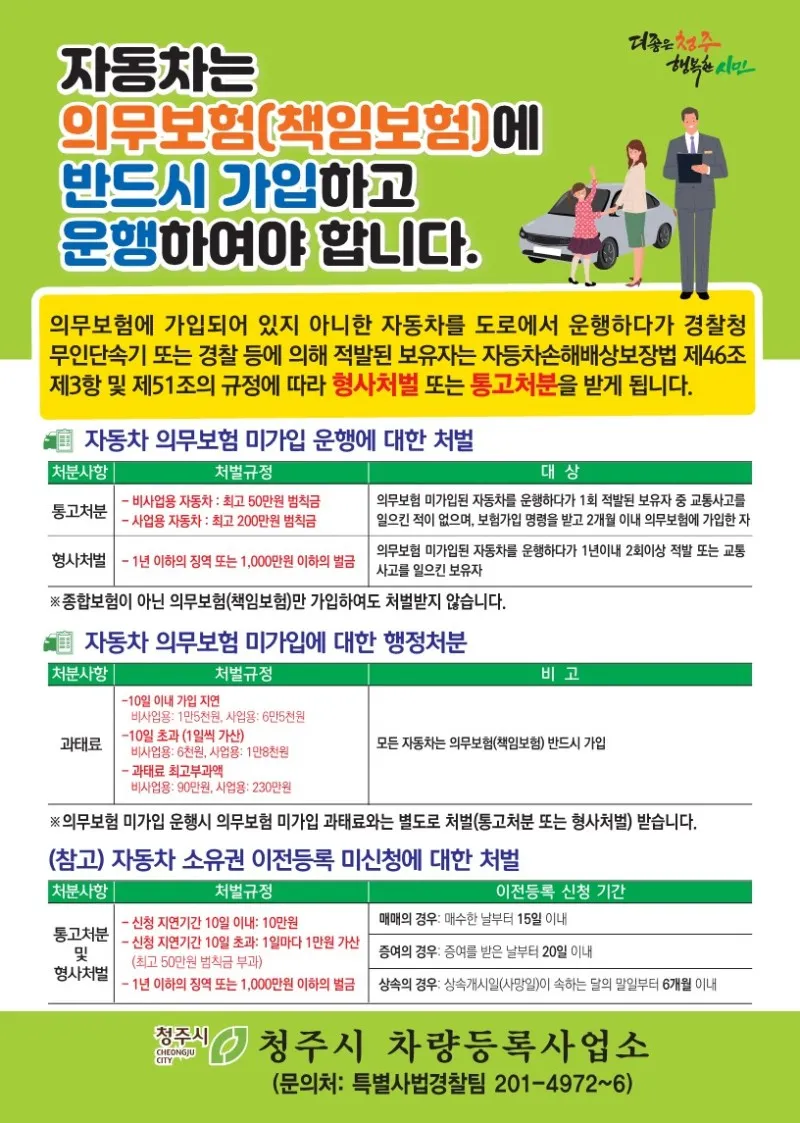 자동차 의무보험 미가입에 대한 처벌 및 행정처분 안내