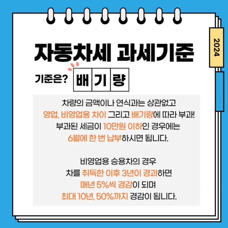 ※자동차세는 영업용 여부와 배기량에 따라 달라집니다.