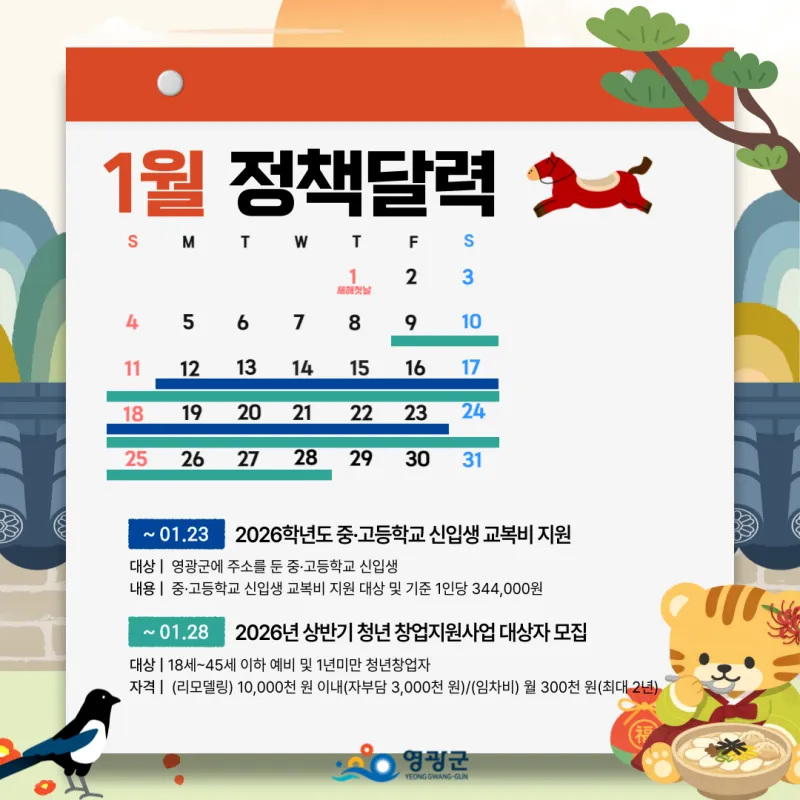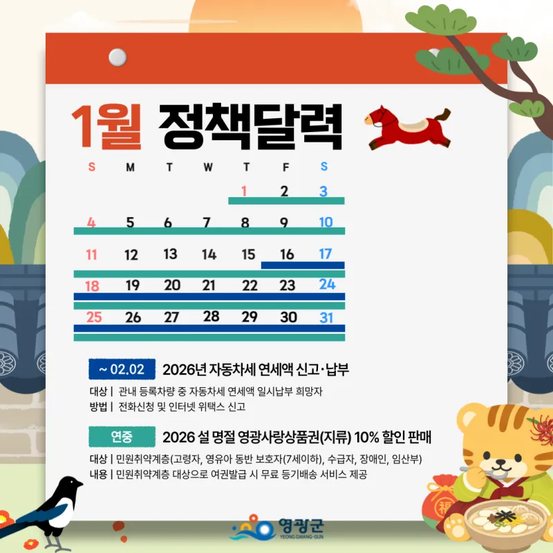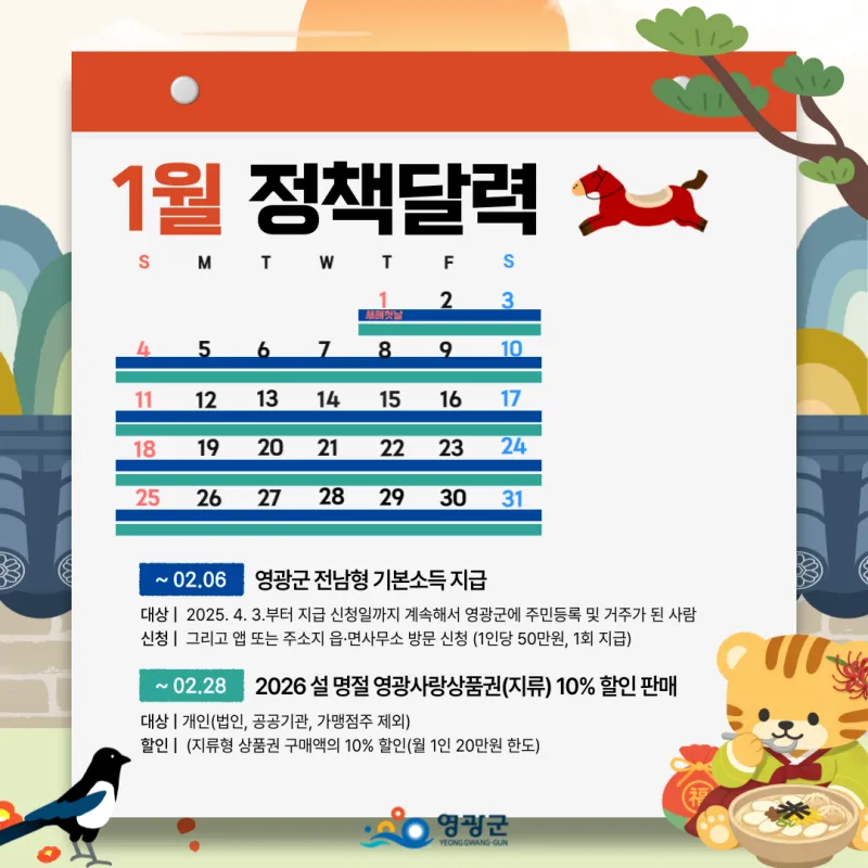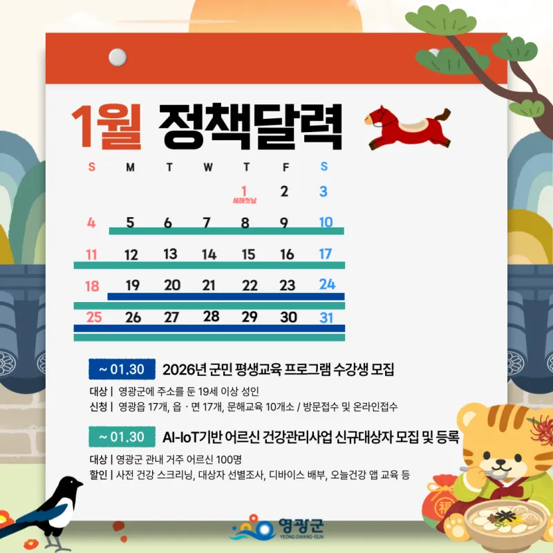 🗓️ 2026년 1월, 병오년 새해 영광군 정책달력 한눈에!
