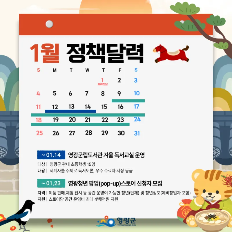 1월 영광군 정책달력을 한눈에 보기 쉽게 정리해 드립니다.