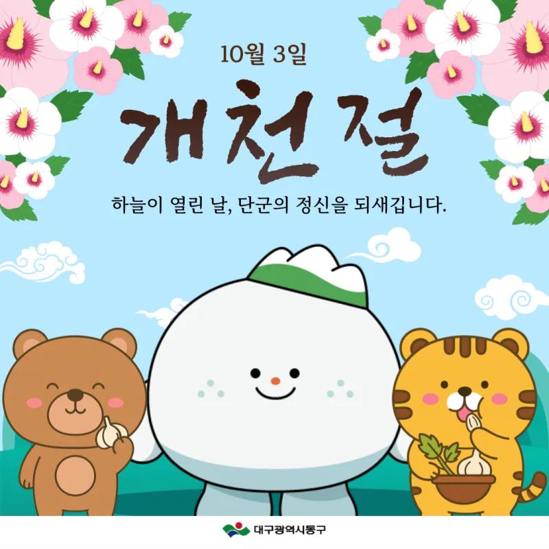 {"title":"10월 3일 개천절, 우리 역사를 기리는 날✨","source":"https://blog.naver.com/dgdonggu/224029545367","blogName":"대구 동구 ..","domainIdOrBlogId":"dgdonggu","nicknameOrBlogId":"대구 동구청","logNo":224029545367,"smartEditorVersion":4,"lineDisplay":true,"meDisplay":true,"cafeDisplay":true,"outsideDisplay":true,"blogDisplay":true}