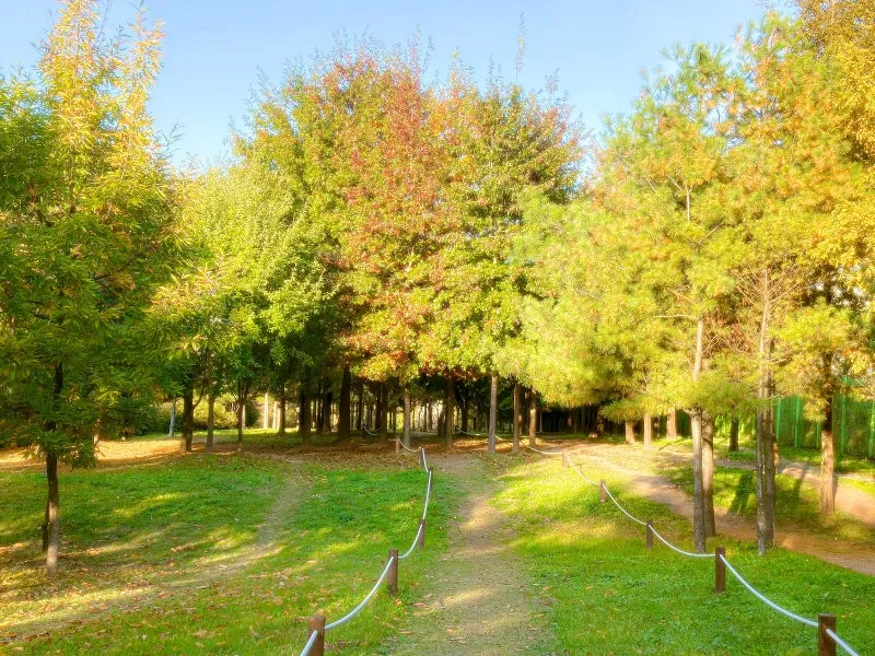 중촌시민공원은 단풍나무와 붉게 물든 메타세쿼이아,