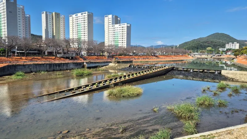 잠시 경천을 둘러보러 왔습니다. 봄, 여름에 천변에 가득했던 꽃들을 다 정리하고 황토 흙이 보이네요. 내년 봄에는 또 어떤 꽃들로 장식 될지 기대가 됩니다.