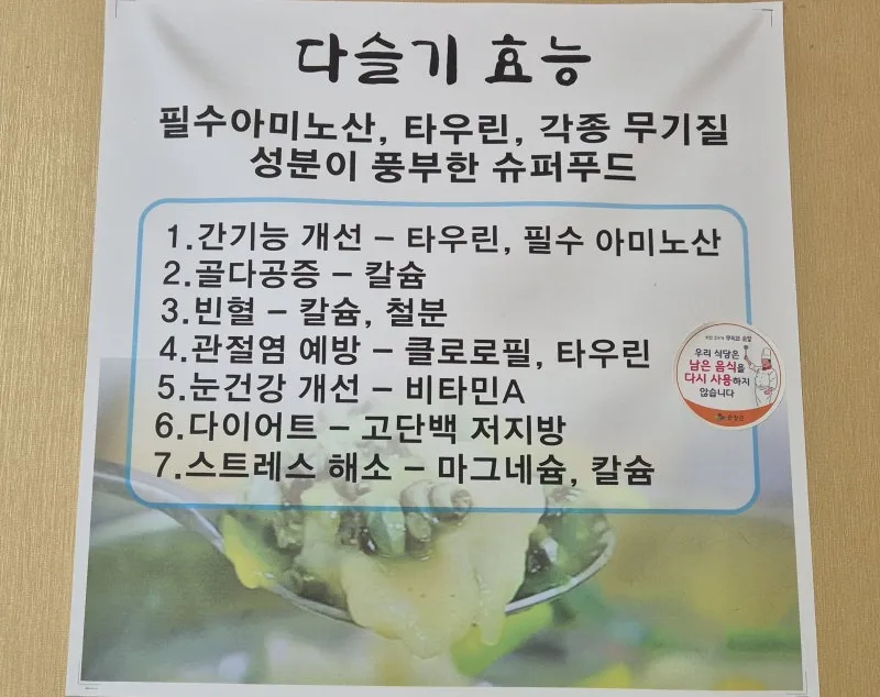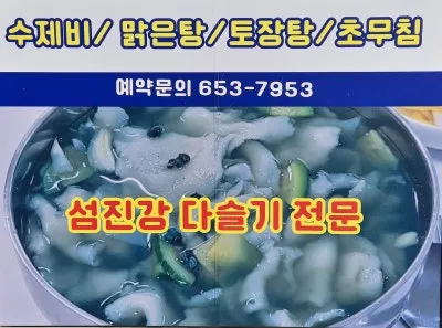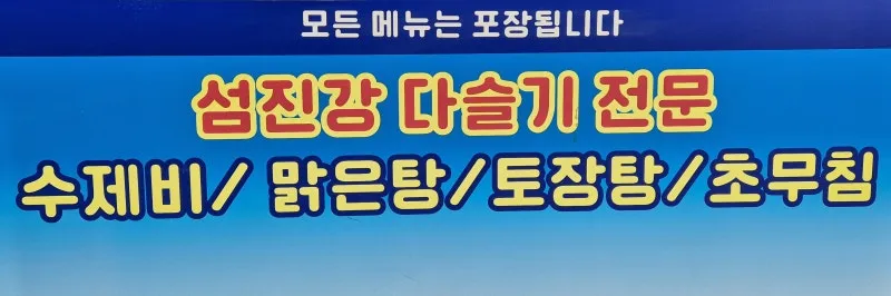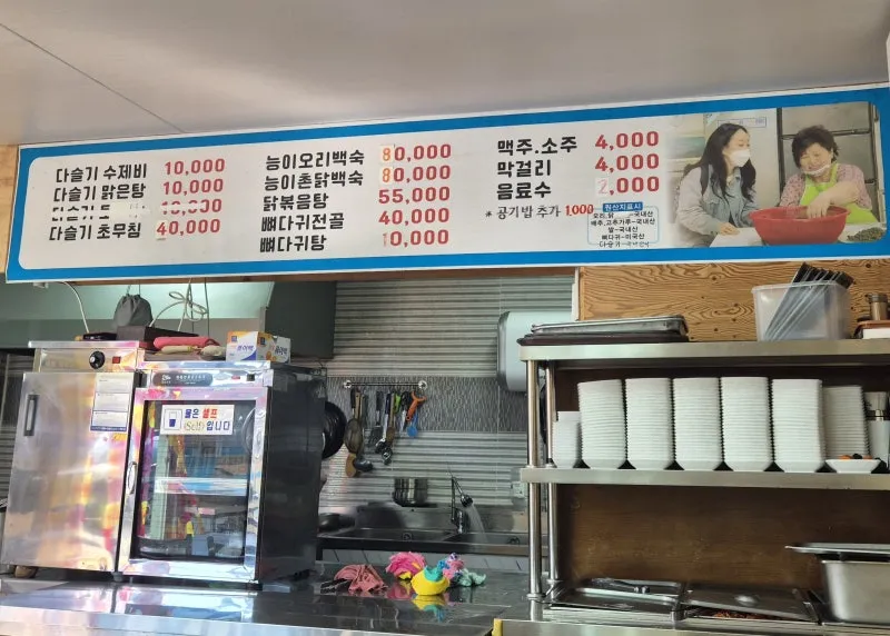 섬진강 다슬기 전문점 친구네집의 메뉴는 다슬기수제비, 다슬기맑은탕, 다슬기초무침 그리고 백숙, 닭볶음탕, 뼈다귀탕도 하는군요.