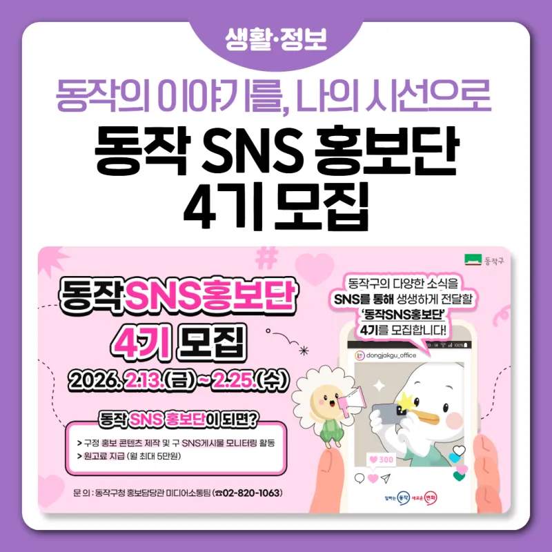 2026년 동작구와 함께할 동작 SNS 홍보단 4기를 모집합니다!✨