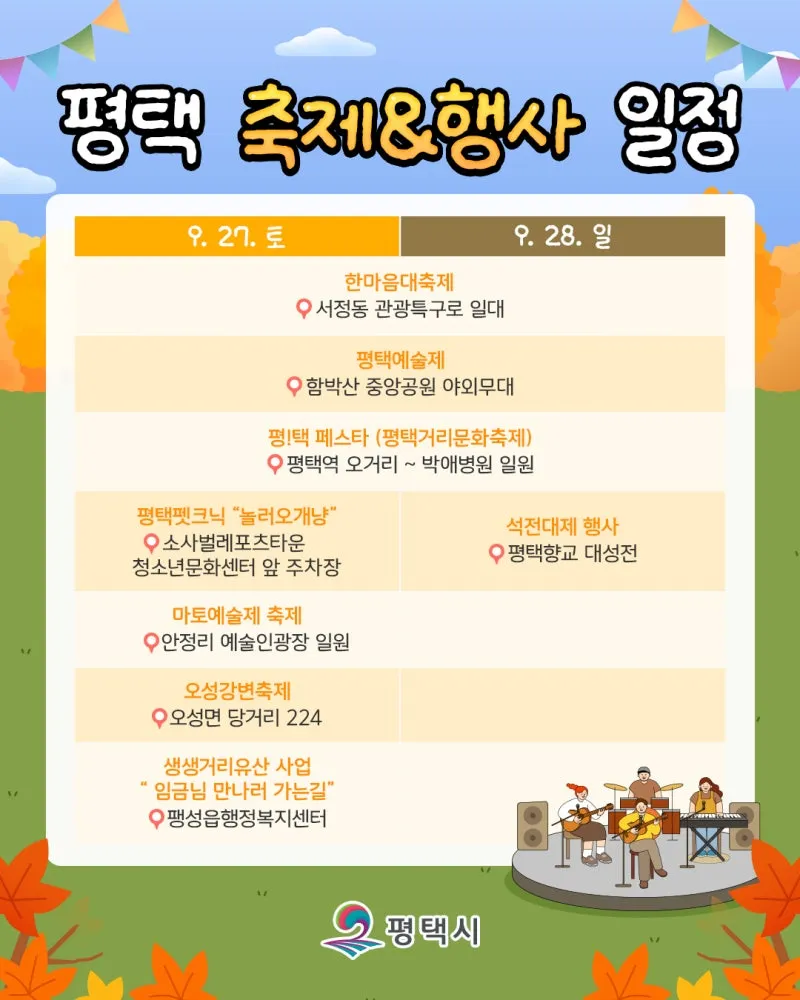 [행사 모음집.zip] 9월 27~28일, 평택 전역이 축제로 물든다