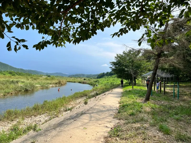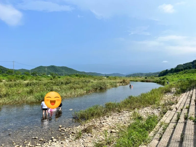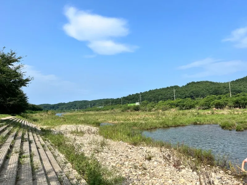 냇가도 맑아서 발 담그기 딱 좋아요.