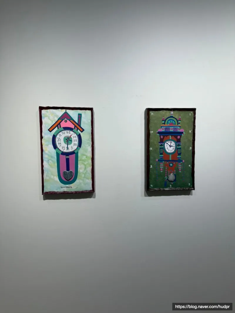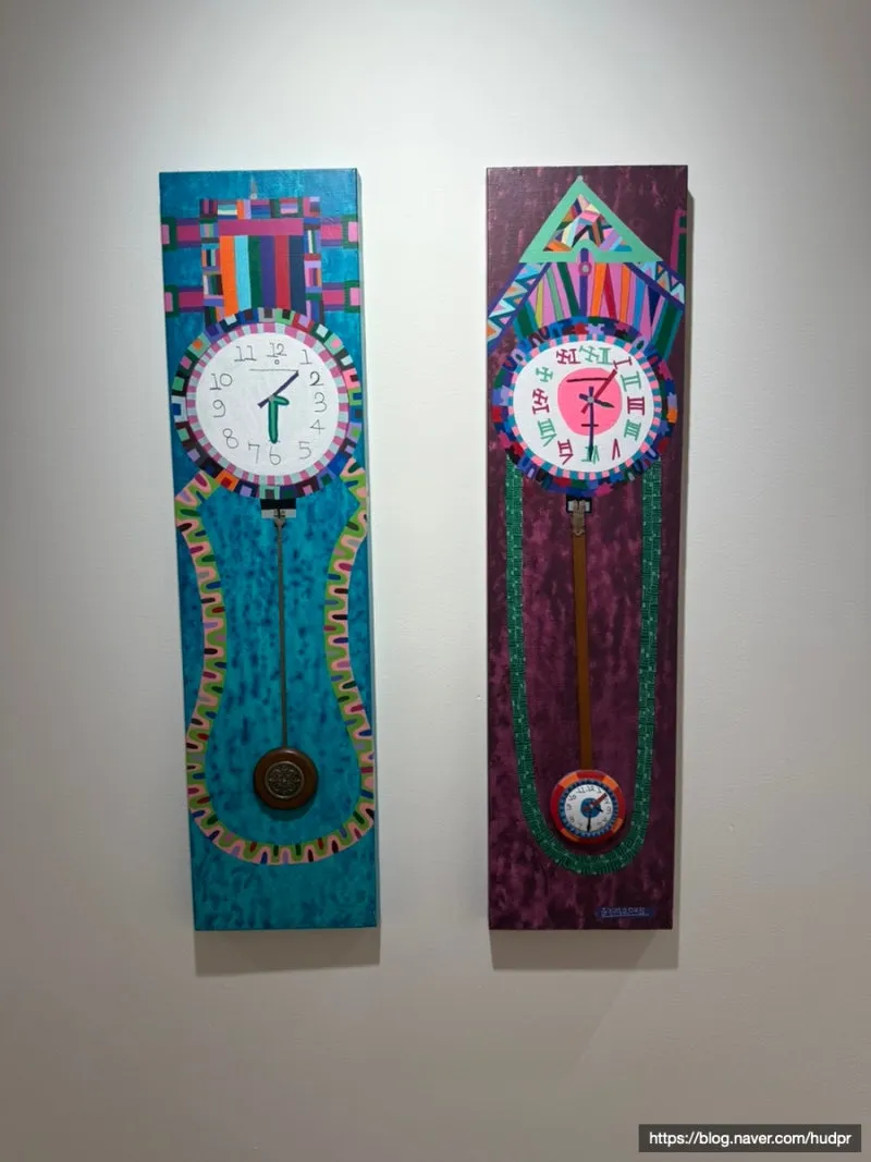 앞의 황 작가처럼 알록달록한 시계들이