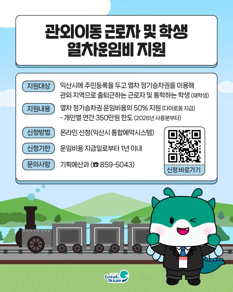 #익산시 #열차운임비지원 #출퇴근지원 #통학지원 #다이로움 #익산혜택