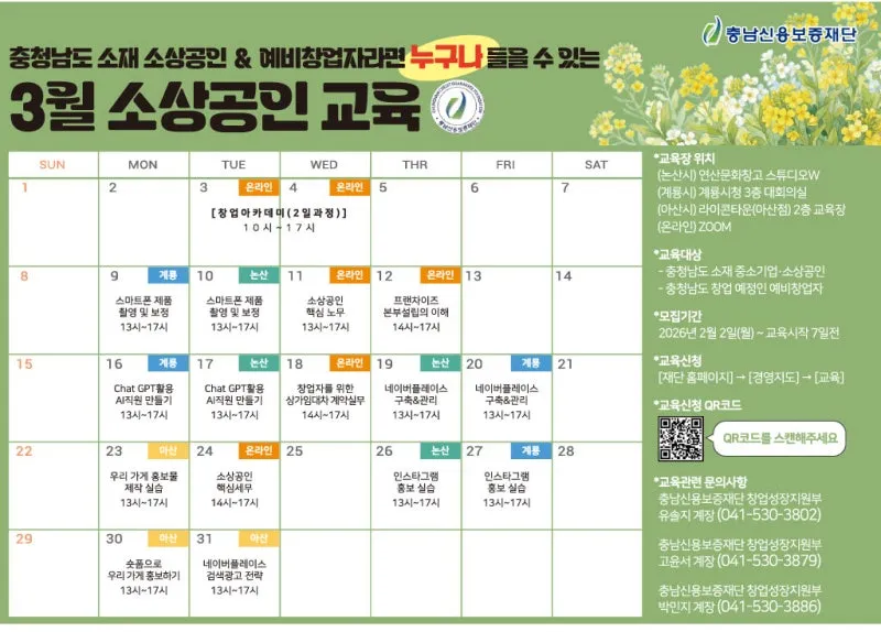 2026년 3월 충남신용보증재단 주관 소상공인 교육 안내